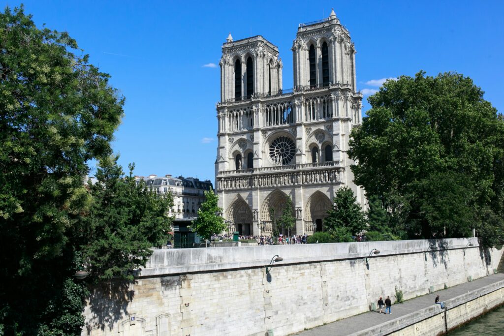 1163年开始建造,1345年完工,法国哥特式建筑的典范,见证了法国历史上的诸多重大事件。建筑使用双塔结构,其中飞扶壁和玫瑰窗为两大建筑特色。