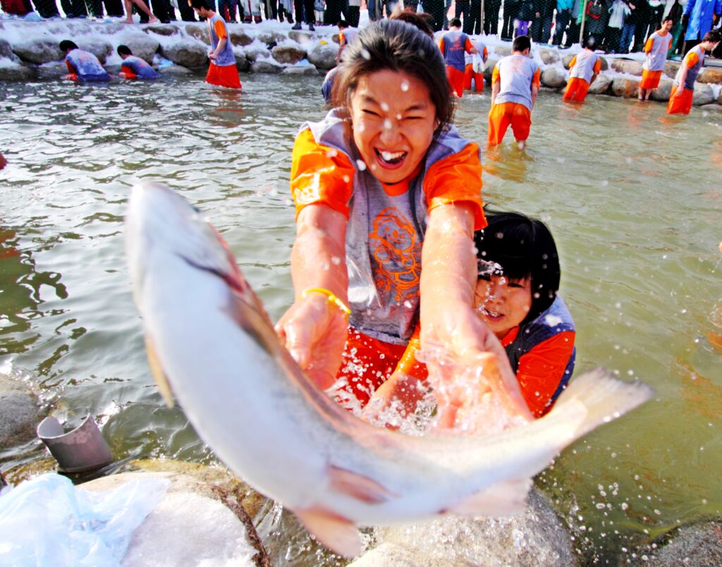 If the cold doesn’t bother you anyway, you can also try barehanded fishing in a pool with the locals! The only rules are that you have to wear shorts and the event t-shirt, plus you get to keep up to three fish that you catch. If you’re super lucky and catch a sancheoneo with a golden ring, you might even win a prize!