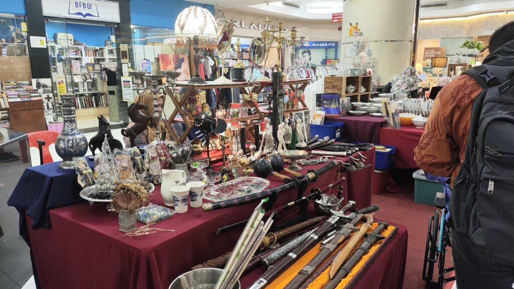 You might spot some surprises like I did, such as a collection of keris and katana swords and even a roughed-up military helmet from who knows where! There’s also plenty of questionable kitsch on offer too.