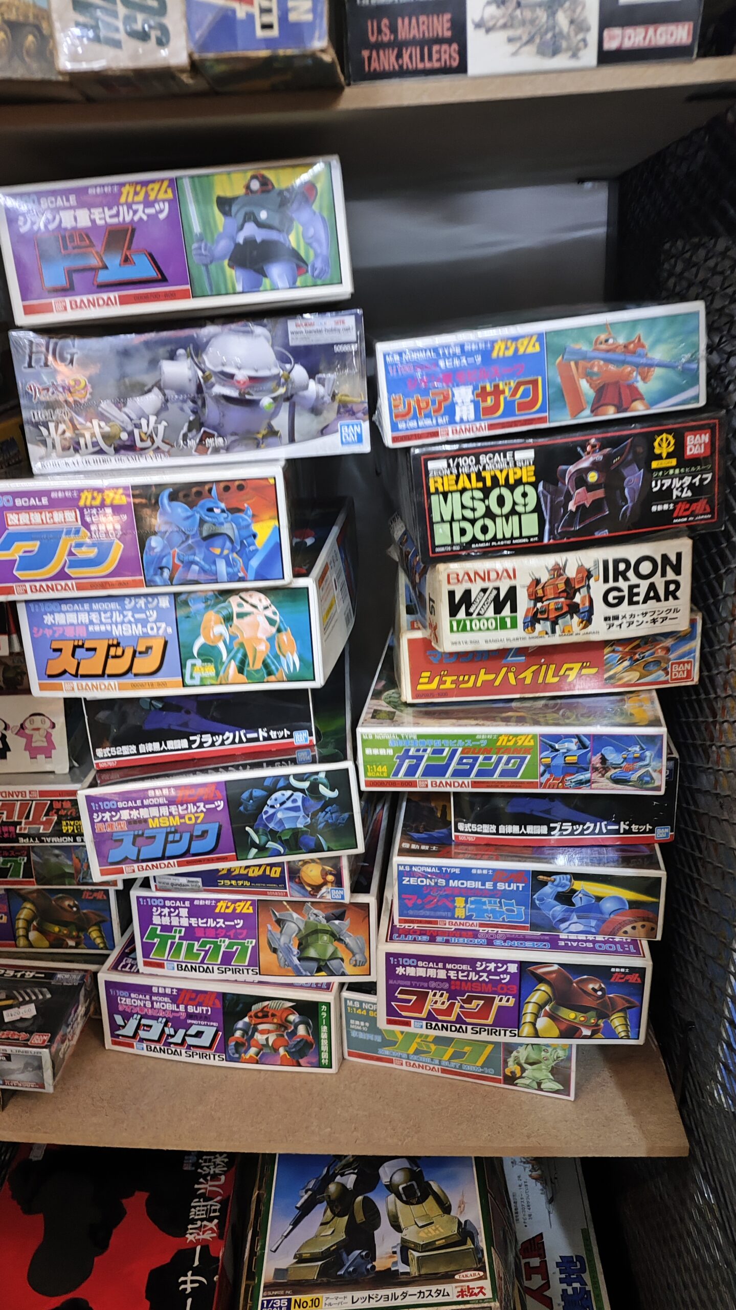 Cutesy, titillating and manly anime figurines line entire cabinets next to stacks upon stacks of plastic model kits from Japan in cramped but jam-packed stores like Arakis Toys, Mytoy and Hypebox.