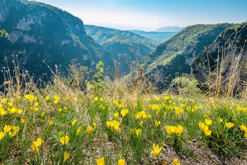 Among the steep, verdant cliffs of the Pindos & Vikos-Aoos National Parks, various trails in the Voidomatis and Vikos Gorge take you through stunning alpine terrain peppered with fields of blossoming lilies and orchids.