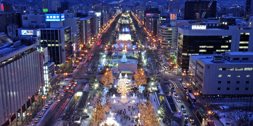 From Sapporo Station, head south through the underground walkways for about 15 minutes and Odori Park will be right there. By rail, you can cut that down to about 2 minutes.